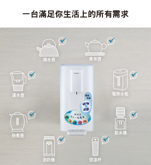• 品 名:Panasonic國際牌 TK-SMRN1-W桌上型RO瞬熱開飲機+獨家磁場波動器