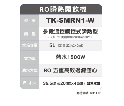 TK-SMRN1-W桌上型RO瞬熱開飲機+獨家磁場波動器